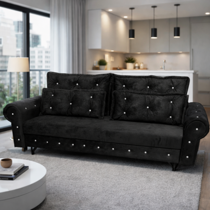 Nowoczesna kanapa rozkładana z pojemnikiem na pościel